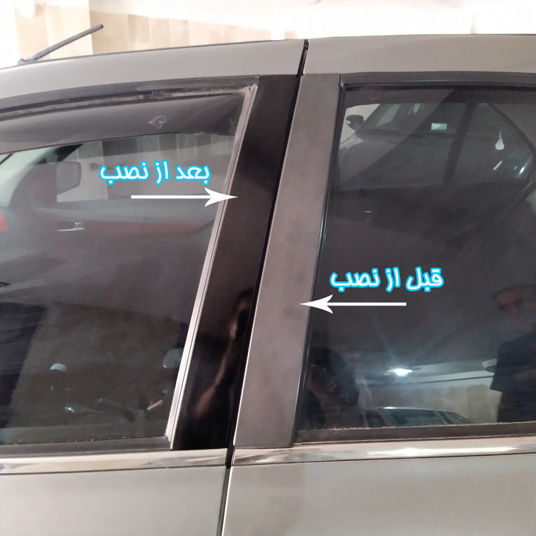 این برچسب برای ستون های دنا و سمند توسط مجموعه آرسی زد اسپرت با برش دقیق دستگاه بازطراحی شده که کاملا ستون های هر دو درب عقب و جلو را به صورت فابریکی پوشش می دهد. برای نصب این برچسب، ستون های درب هارو کاملا تمیز نموده، برچسب هارا تنظیم کنید سپس با یک کارت مثل کارت تلفن یا عابر بانک روی برچسب بکشید تا تمام هوا از زیر برچسب خارج شود.