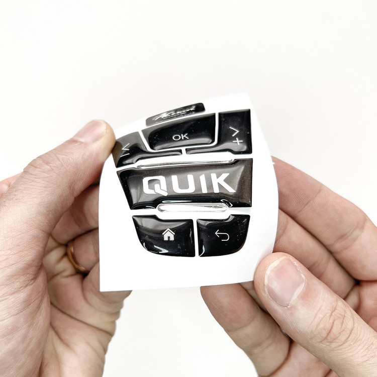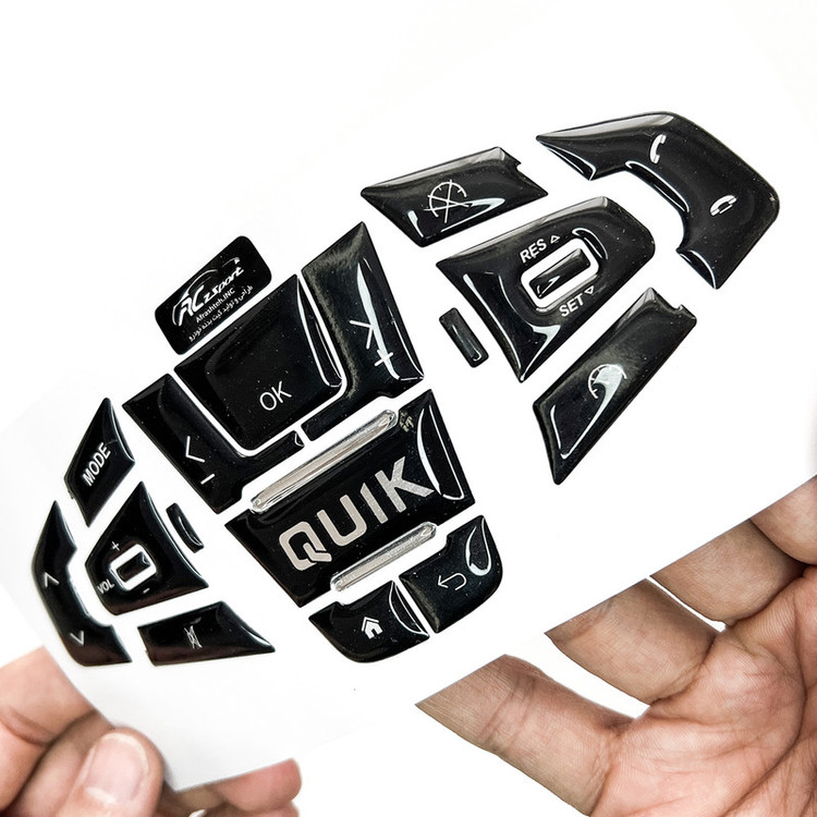 برای اولین بار یک ایده جدید توسط مجموعه آرسی زد اسپرت با رونمایی از ماکت کلیدهای کروز و مدیا فرمان مدل QuikSainaS برای خوردو کوئیک اس و ساینا اس، با تولید یک مجموعه شامل 16 قطعه ماکت کلید های فرمان خودرو کوئیک و ساینا سری S نمای زیبا و فوق العاده جذاب را به فرمان خودرو کوئیک و ساینا اس خود دهید.. این ماکت با طراحی دقیق کلیدهای فرمان کوئیک اس و ساینا اس به طور کامل جای خالی روی فرمان را پر می کند. به صورت کریستال برجسته مشکی، شفافو کرومی میباشند. نصب این محصول بسیار آسان بوده و با استفاده از چسب بیرنگ پشت قطعه ها، کافی است آنها را از روی کاغذ جدا کنید و بر روی محل مربوطه روی فرمان سری اس بچسبانید. ماکت کلید های فرمان مدل QuikSainaS دارای خصوصیاتی همچون ضد حرارت و ضد خط و خش بوده و برای استفاده طولانیمدت مناسب هستند. ماکت کلیدهای فرمان آرسی زد اسپرت مدل QuikSainaS فقط مناسب برای کوئیک اس و ساینا اس و سایر تولیدات مشابه فرمان این خودرو است.