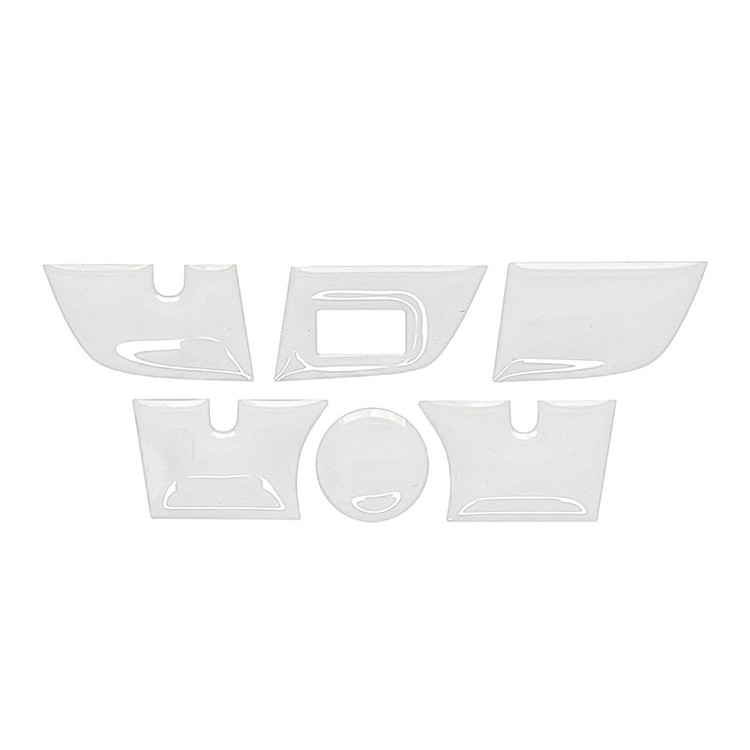 با تولید اولین سری از این متریال برای محافظ کلیدهای فرمان کروز پژو 207 توسط مجموعه آرسی زد اسپرت در ایران بازخورد و کیفیت و رضایت را از مشتریان خاص پسند خود جلب کرد. از این رو برای سایر خودرو ها هم از این متریال و ایده جالب استفاده کردیم و در مسیر تولید قرار دادیم. کاورگلس کلیدهای تهویه رانا، یک مجموعه شامل 6 قطعه کاورگلس برای کلیدهای تهویه داشبورد خودرو رانا و سایر مدل های مشابه است. این کاورگلس ها با طراحی دقیق کلیدهای تهویه داشبورد رانا تولیدشده که به صورت کریستال برجسته، بیرنگ و شفاف میباشند. با استفاده از کاورگلس کلیدهای تهویه داشبورد رانا میتوانید کلیدهای تهویه خودرو خود را بهصورت براق و جذاب نگهدارید و از خراشیدگی و فرسایش حروف و اشکال روی کلیدها جلوگیری کنید. نصب این کاورگلس بسیار آسان است و با استفاده از چسب بیرنگ پشت کریستالها، کافی است آنها را از روی کاغذ جدا کنید و بر روی کلیدهای مربوطه بچسبانید. کاورگلس کلید های تهویه داشبورد رانا دارای خصوصیاتی همچون ضد حرارت و ضد خط و خش بوده و برای استفاده طولانیمدت مناسب هستند. این کاورگلس باعث حفظ زیبایی و عدم آسیب به کلید های تهویه میشود.
