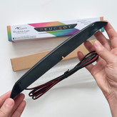 بعد از تولید موفق وردپلیت معمولی پژو 207 برای اولین بار توسط آرسی زد اسپرت، اینبار با معرفی وردپلیت جدید با طرح جدیدتر و تکنولوژی متمایز نسبت به طرح گذشته به نام وردپلیت لایت معرفی میگردد. این قطعه یک ورد پلیت همه چیز تمام می باشد که ساخته شده از پلاستیک هایگلس مشکی که با ترکیب حروف کرومی فونت پرتقالی PEUGEOT به صورت هفت رنگ در حالت خاموش و در حالت روشن به صورت نور یکپارچه یخی رنگ کاری جدید از گروه مجموعه آرسی زد اسپرت می باشد. این قطعه با استفاده از 2 رشته سیم به پایه های مخصوص پشت چراغ خودرو در مدار مثبت و منفی قرار میگیرد و با روشن کردن چراغ کوچک این قطعه، بدون ایجاد خطا در سیستم خودرو در تاریکی شب خودنمایی میکند. این قطعه را با چسب 2طرفه ایی که در بسته بندی موجود می باشد می توان در محل مورد نظر چسباند. با توجه به شیار تعبیه شده روی قطعه که مرکز قطعه را تعیین میکند به راحتی می توان در مرکز سپر خودرو پژو 207 نصب نمود. (ضمنا، طرح یا حروف سفارشی یا برند خودروهای دیگر هم قابل سفارش است)